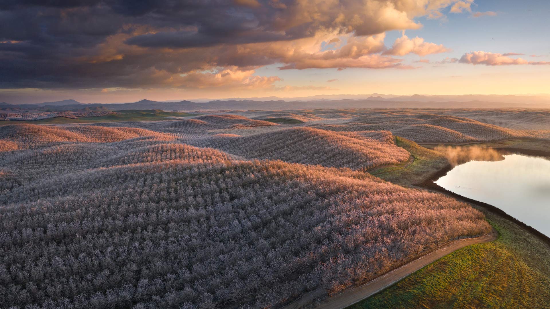 Almond trees in full bloom, California, USA © Jeffrey Lewis/Tandem Stills + Motion
