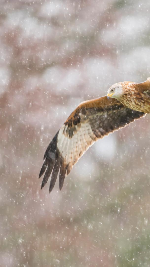 Graça em pleno voo Milhafre-real na neve (© Carl Mckie/500px/Getty Images)