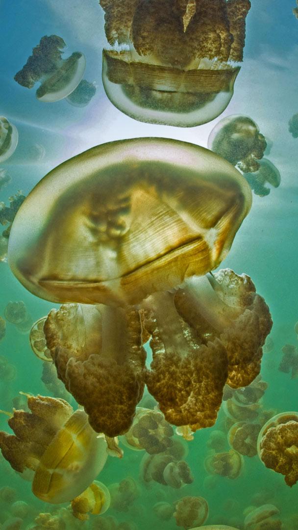 Jellies in a world of their own Golden jellyfish in Jellyfish Lake on the island of Eil Malk, Palau (© Nature Picture Library/Alamy)