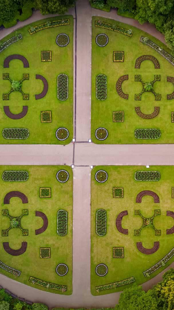 Stunning symmetry Abbey Gardens in Bury St Edmunds, Suffolk, England (© Charles Martinez/Amazing Aerial Agency)