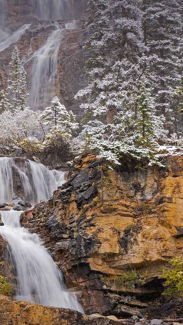 落基山脉的径流 贾斯珀国家公园纠结溪瀑布,阿尔伯塔省,加拿大 (© Jeff Foott/Minden Pictures)