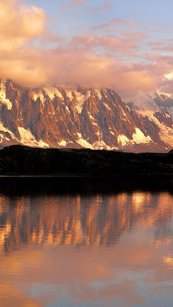 切斯瑞湖 倒映在湖中的勃朗峰山脉,法国霞慕尼市 (© Stefan Huwiler/Alamy)