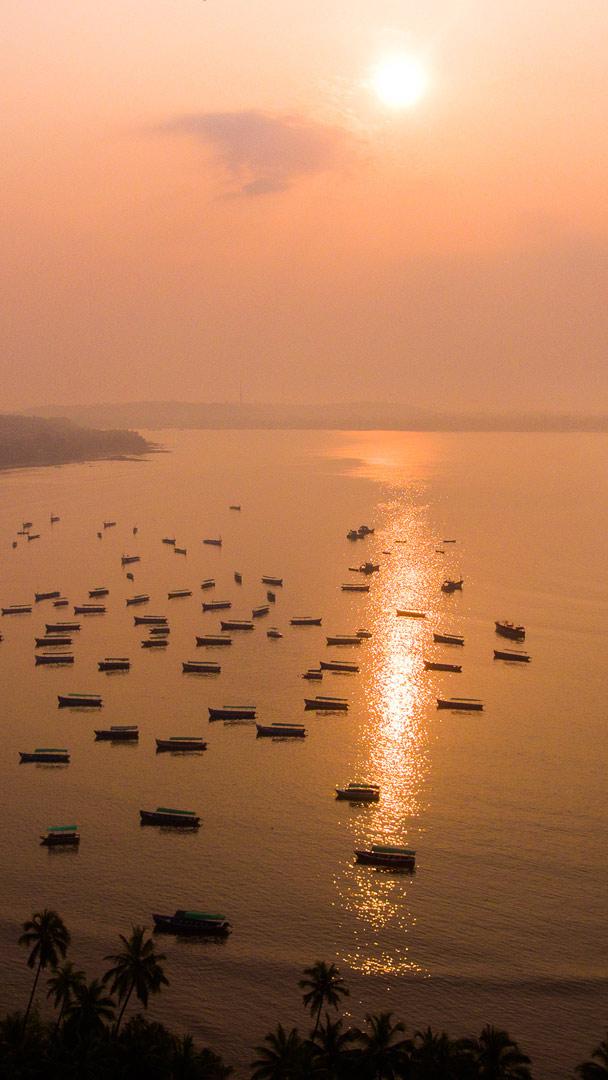 沙滩的秘密和日落 可可海滩上的渔船,果阿邦,印度 (© Abhinav Sah/Shutterstock)