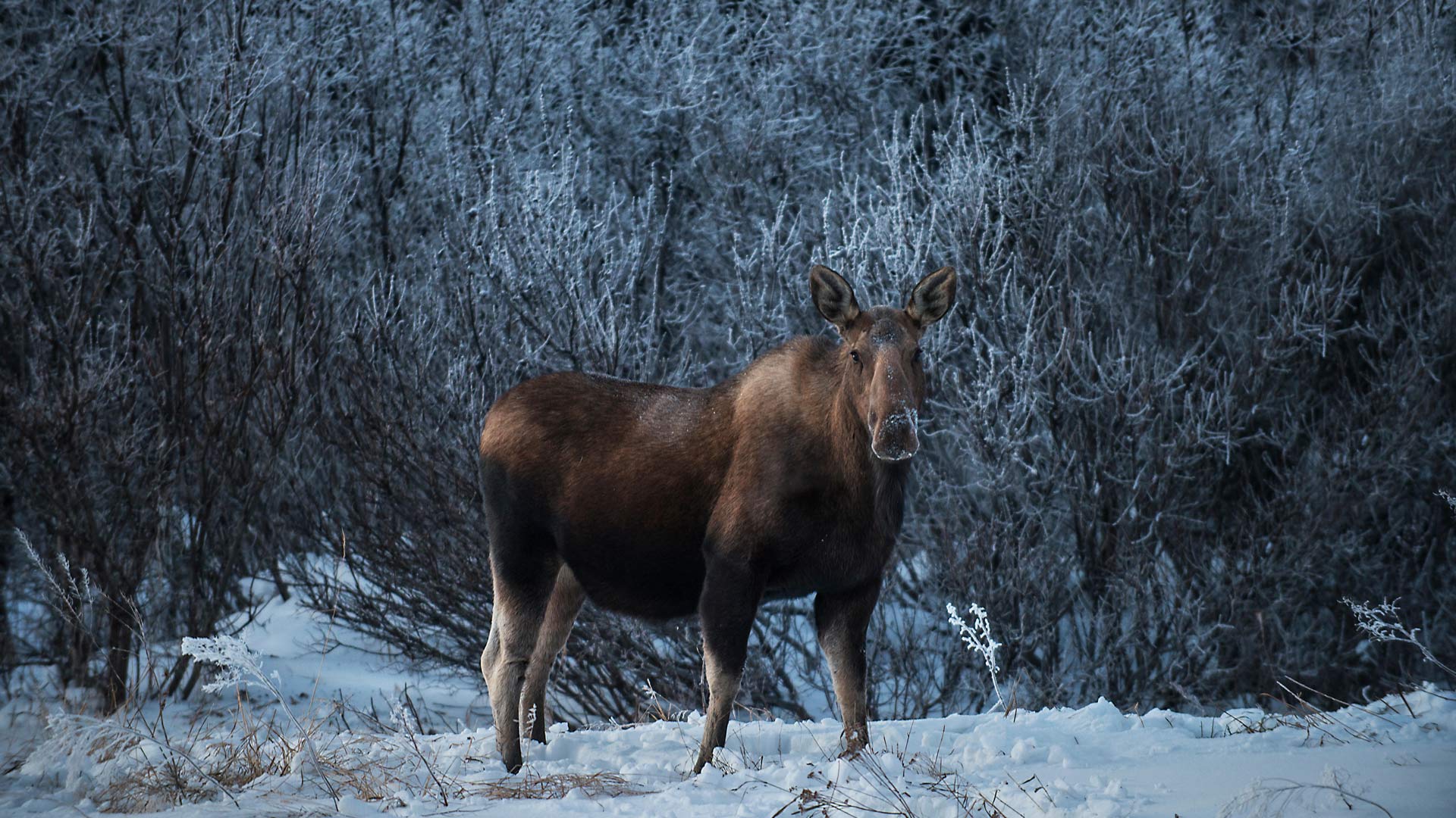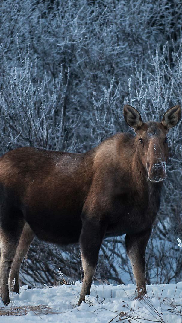 Schon einmal einen Alaska-Elch aus der Nähe gesehen? Diese beeindruckenden Tiere sind die größten ihrer Art und können bis zu 635 Kilogramm wiegen und eine Schulterhöhe von 1,83 Metern erreichen. Männliche Elche, auch Bullen genannt, tragen ein majestätisches Geweih, während Elchkühe und ihre Kälber ohne Geweih auskommen. Im Denali-Nationalpark in Alaska leben etwa 1.800 Elche, die durch die Wälder in der Nähe von Seen und Sümpfen streifen. Im Winter ernähren sie sich von Zweigen, während im Sommer eine bunte Mischung aus Blütenpflanzen und Blättern auf dem Speiseplan steht. Elche sind normalerweise friedlich, können aber aggressiv werden, wenn sie sich gestört fühlen – vor allem im Winter oder während der Paarungszeit.