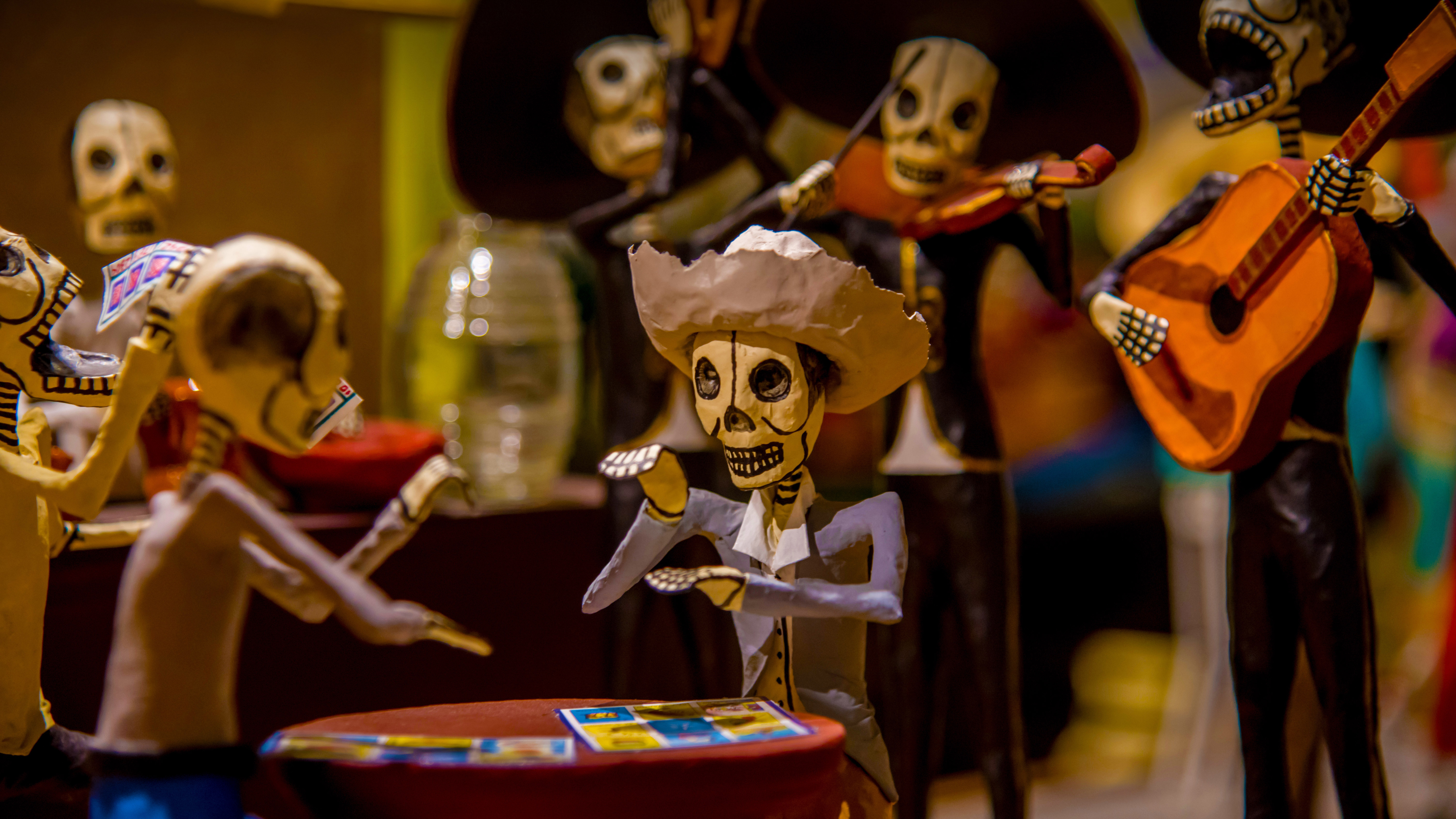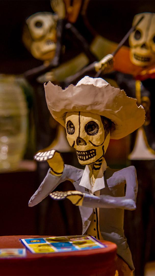 What are they celebrating? Skeletons (calacas) dressed up for Día de los Muertos celebrations in Mexico (© Amelia Fuentes Marin/Getty Images)