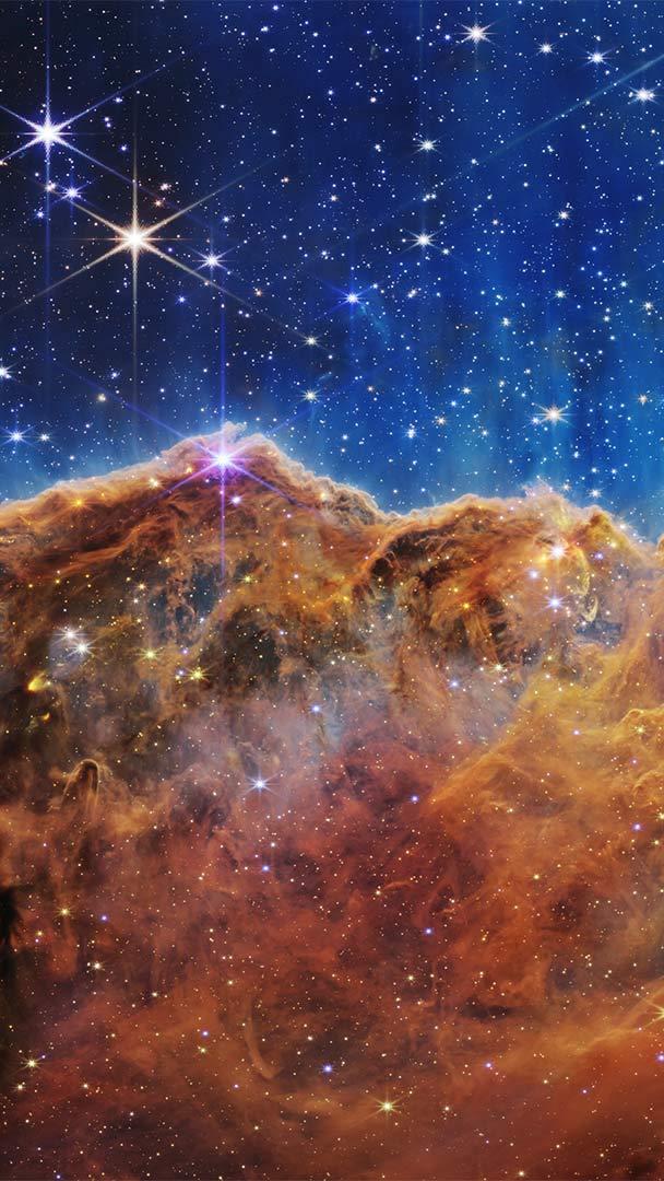 Golden cliffs of deep space Cosmic Cliffs in the Carina Nebula (© NASA, ESA, CSA, and STScI)