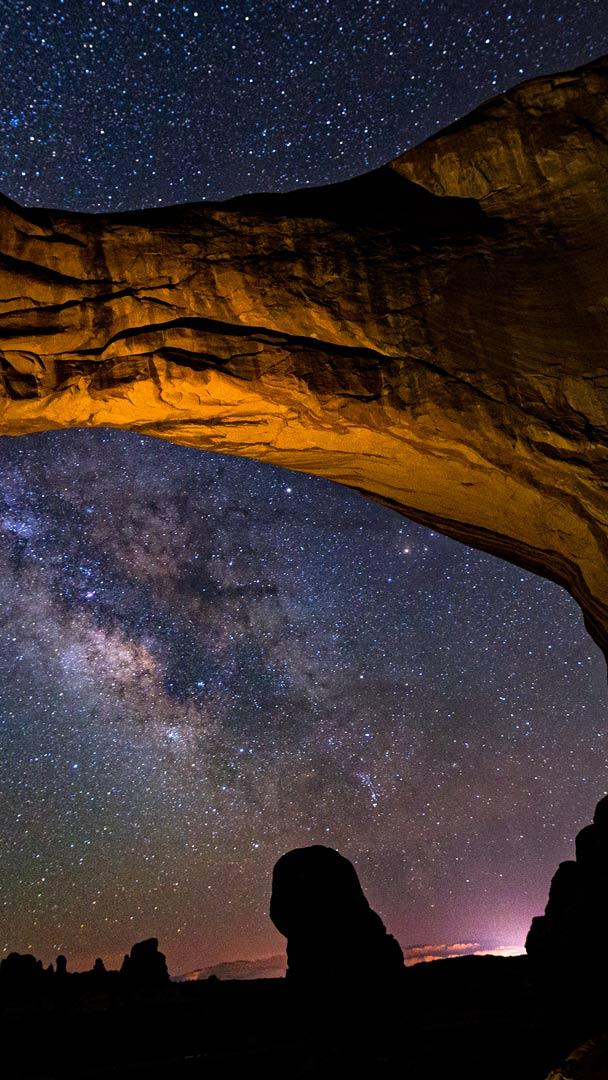Portale verso lInfinito La Via Lattea incorniciata dal Double Arch nel Parco Nazionale degli Arches, Utah, USA (© Adventure_Photo/Getty Images)