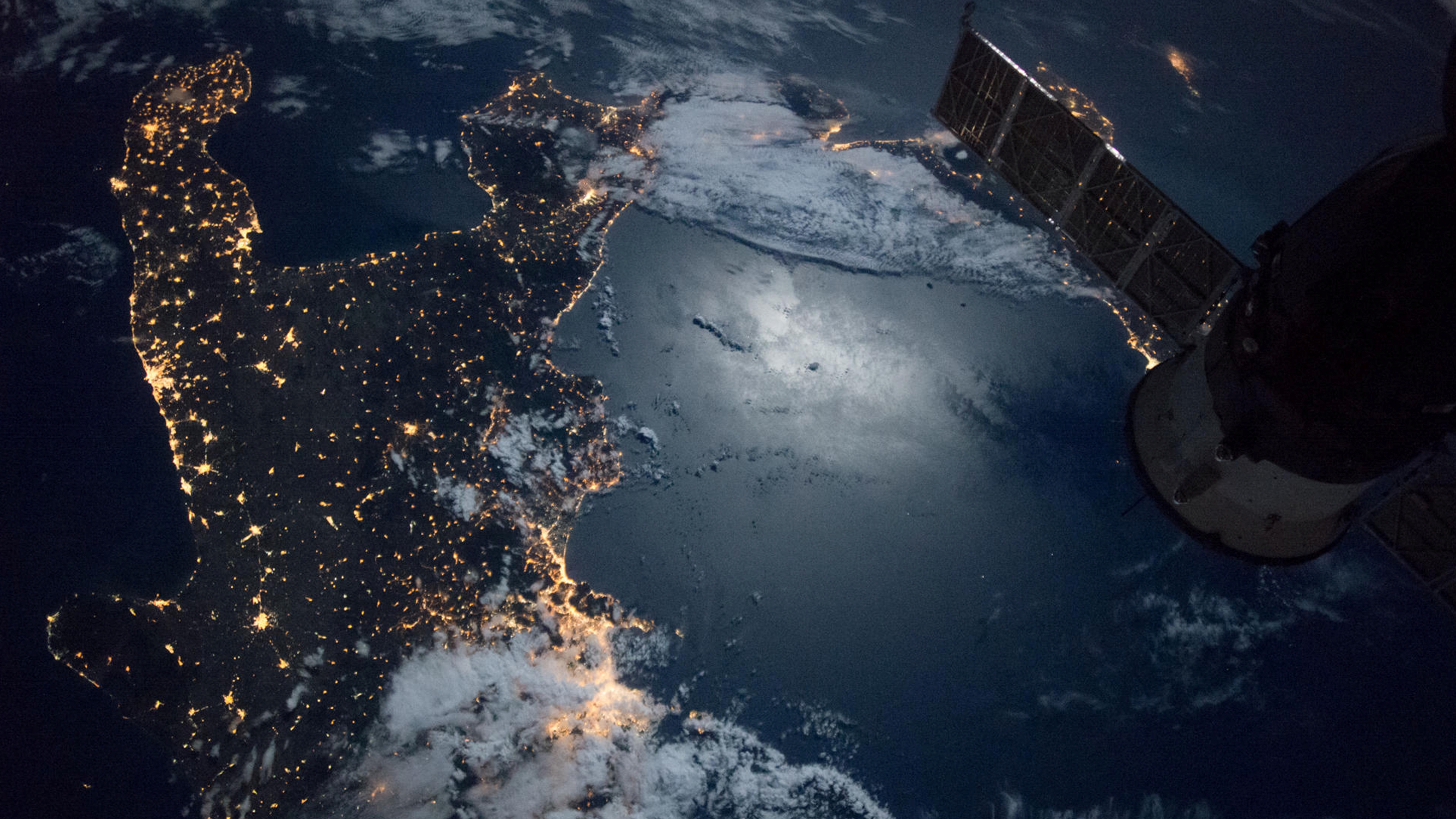 Radici spaziali? Volo della Stazione Spaziale sopra la punta meridionale dellItalia (© NG Images/Alamy)