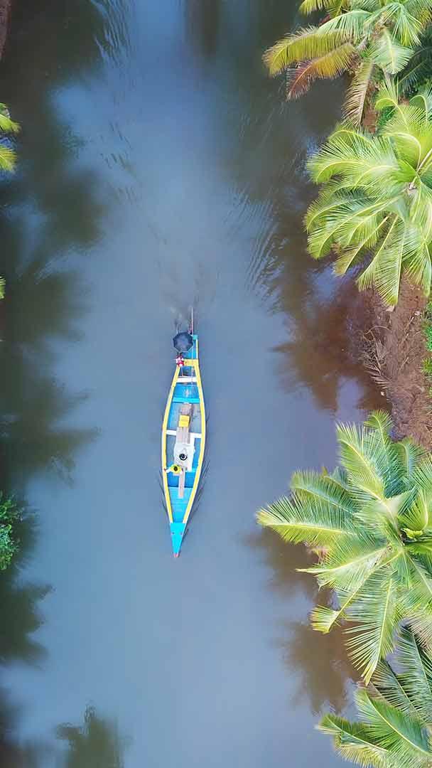 Il paese di Dio Veduta aerea di una barca in Kerala, India (© Shutterstock)