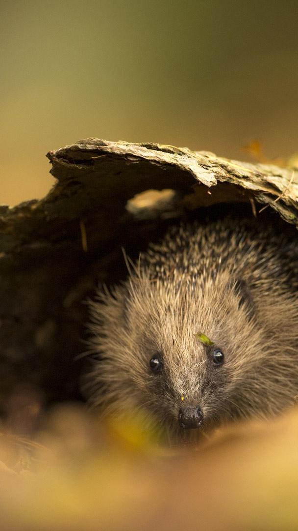 Questo posto è occupato Riccio europeo che si ripara nella corteccia degli alberi, Sussex (© Jules Cox/Minden Pictures)