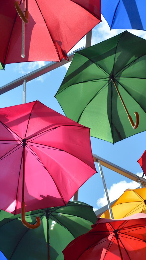 カラフルな傘が広がる「アンブレラスカイ」 © Malcolm P Chapman/Getty Images
