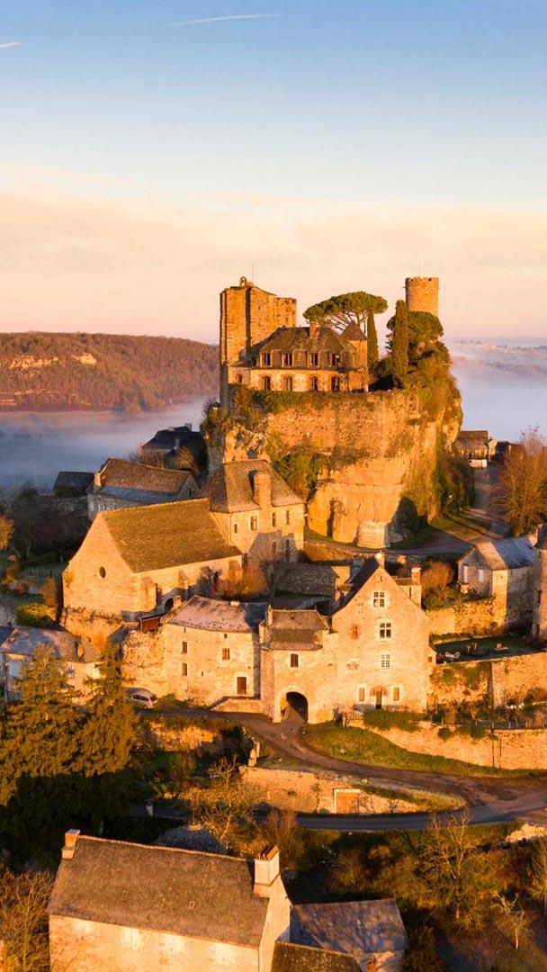 フランス テュレンヌ村の朝 朝日を浴びるテュレンヌ村, フランス ヌーヴェル=アキテーヌ (© Tim Mannakee/plainpicture)