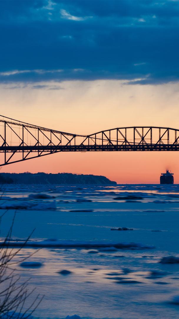 柔らかい日差しを浴びる巨大な橋 ケベック橋, カナダ ケベック州 (© Ronald Santerre/Getty Images)