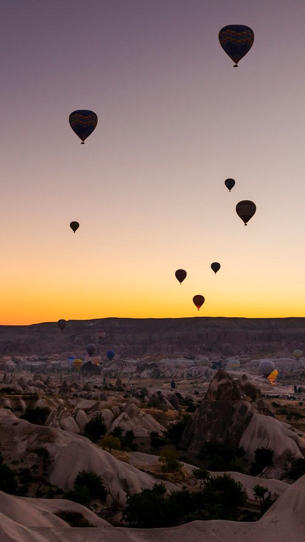 カッパドキアの上空を飛行する気球 カッパドキア, トルコ (© Anton Petrus/Getty Images)