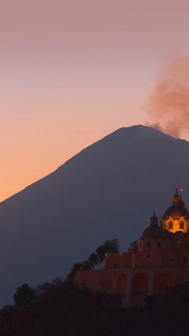 From victory to festivity Church of Nuestra Señora de los Remedios and Popocatépetl, Puebla, Mexico (© Radius Images/Shutterstock)