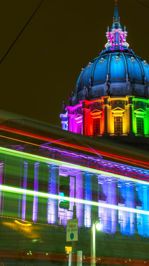 San Francisco’s City Hall illuminated by the iconic colors of Pride © Wonwoo Lee/Getty Images