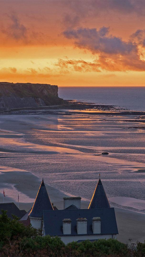 As the sun sets on a beach in Normandy, France, what appear to be working barges and boats offshore are actually the remnants of a Mulberry harbour, one of the temporary portable harbors created by the Allies during World War II. Their story began 77 years ago today, on D-Day, when the first of the Allied troops touched down on the Nazi-occupied beaches at Normandy. After the Allies successfully held the beachheads, the Mulberries were towed into place so the artificial harbors could provide the port facilities necessary to offload the thousands of men and vehicles, and tons of supplies necessary to sustain the effort to drive the Germans out of France.